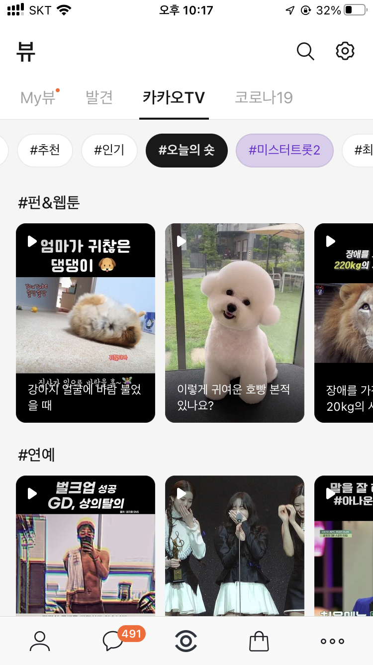 1. 카카오톡 아래에 있는 눈 모양 버튼 (뷰탭)을 클릭한다.