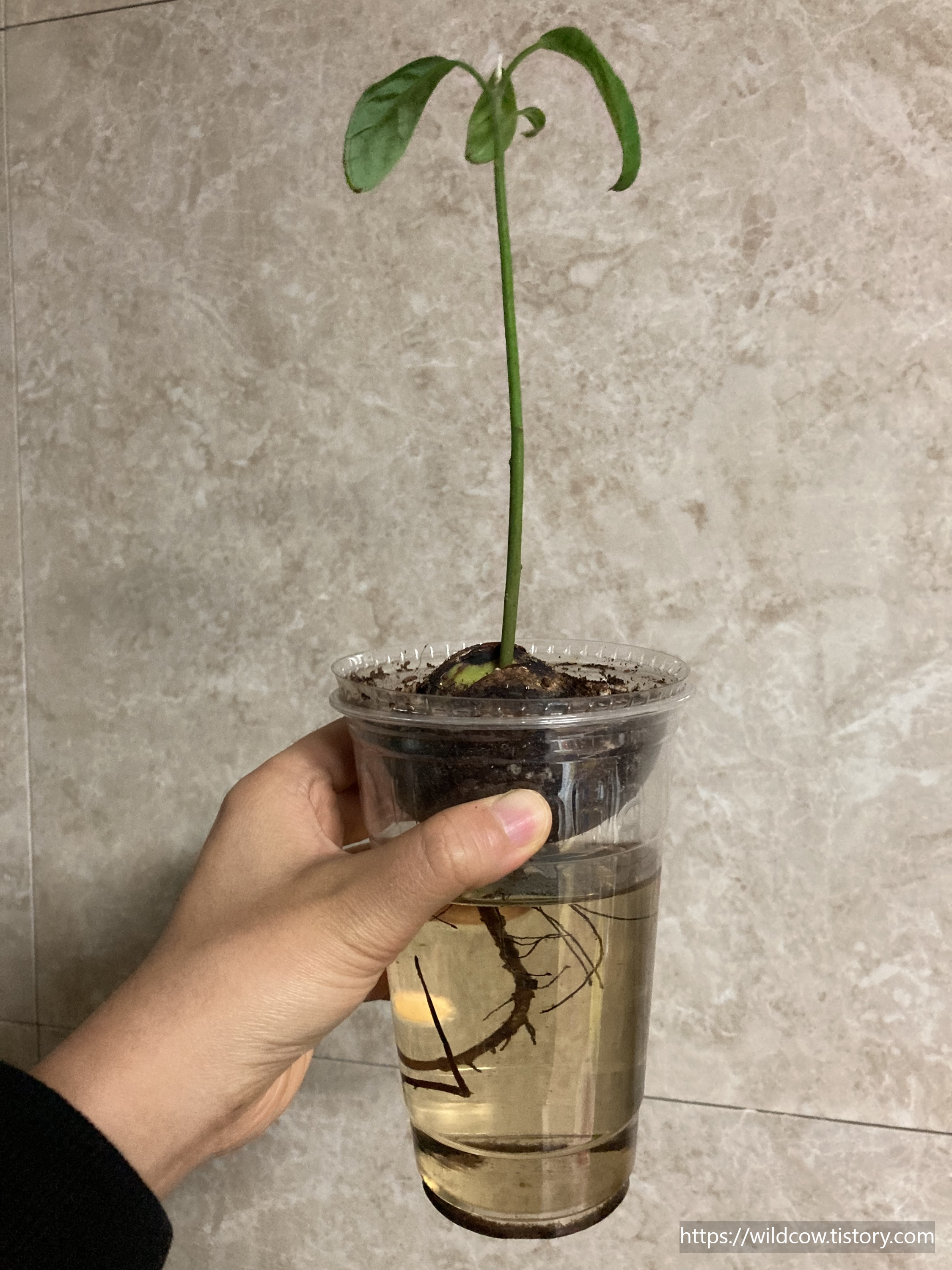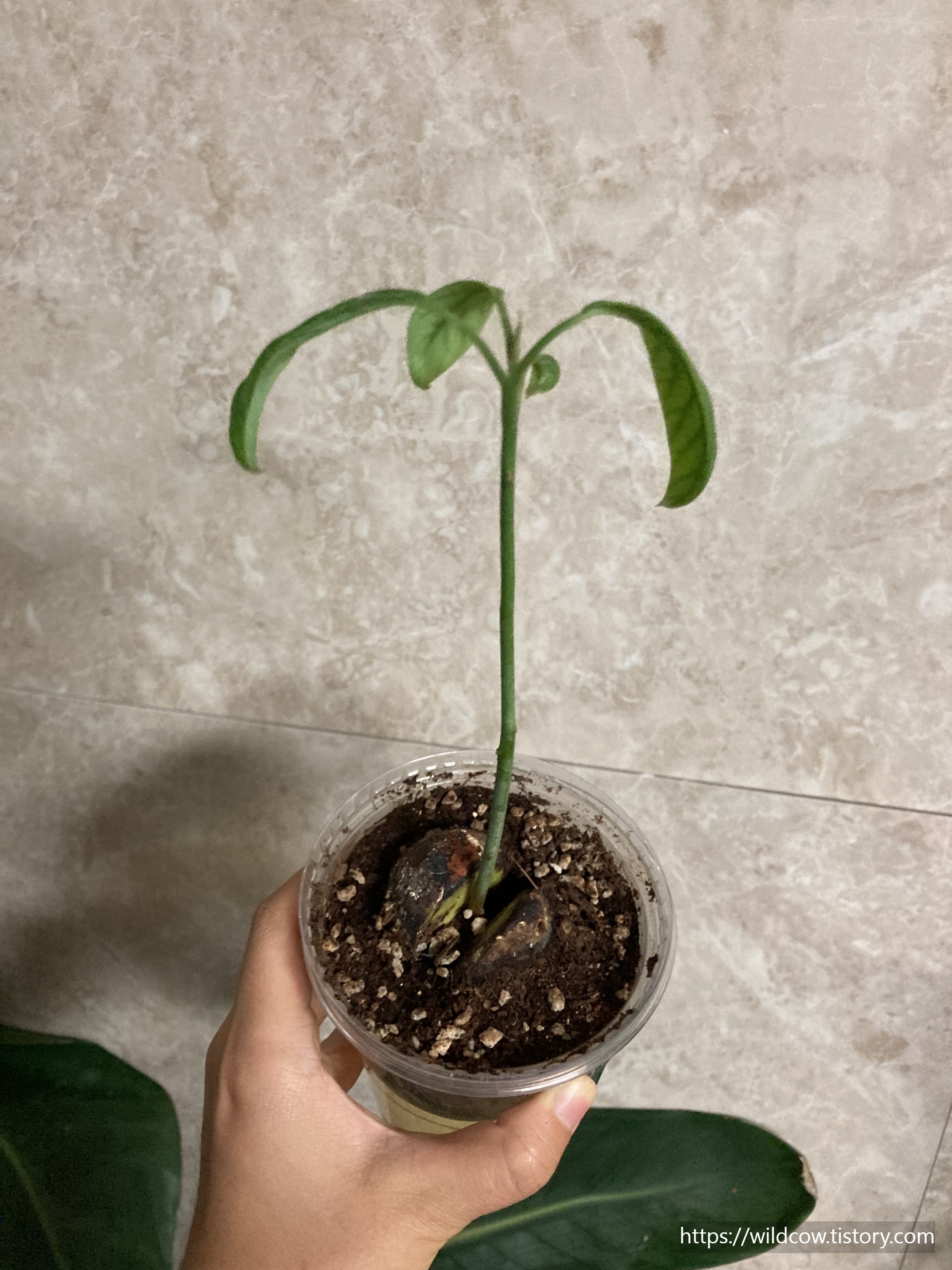 전에 아보카도 씨 발아 포스팅 때 소개했는데, 이렇게 씨를 발아하고 이대로 쭉 키우시면 됩니다.