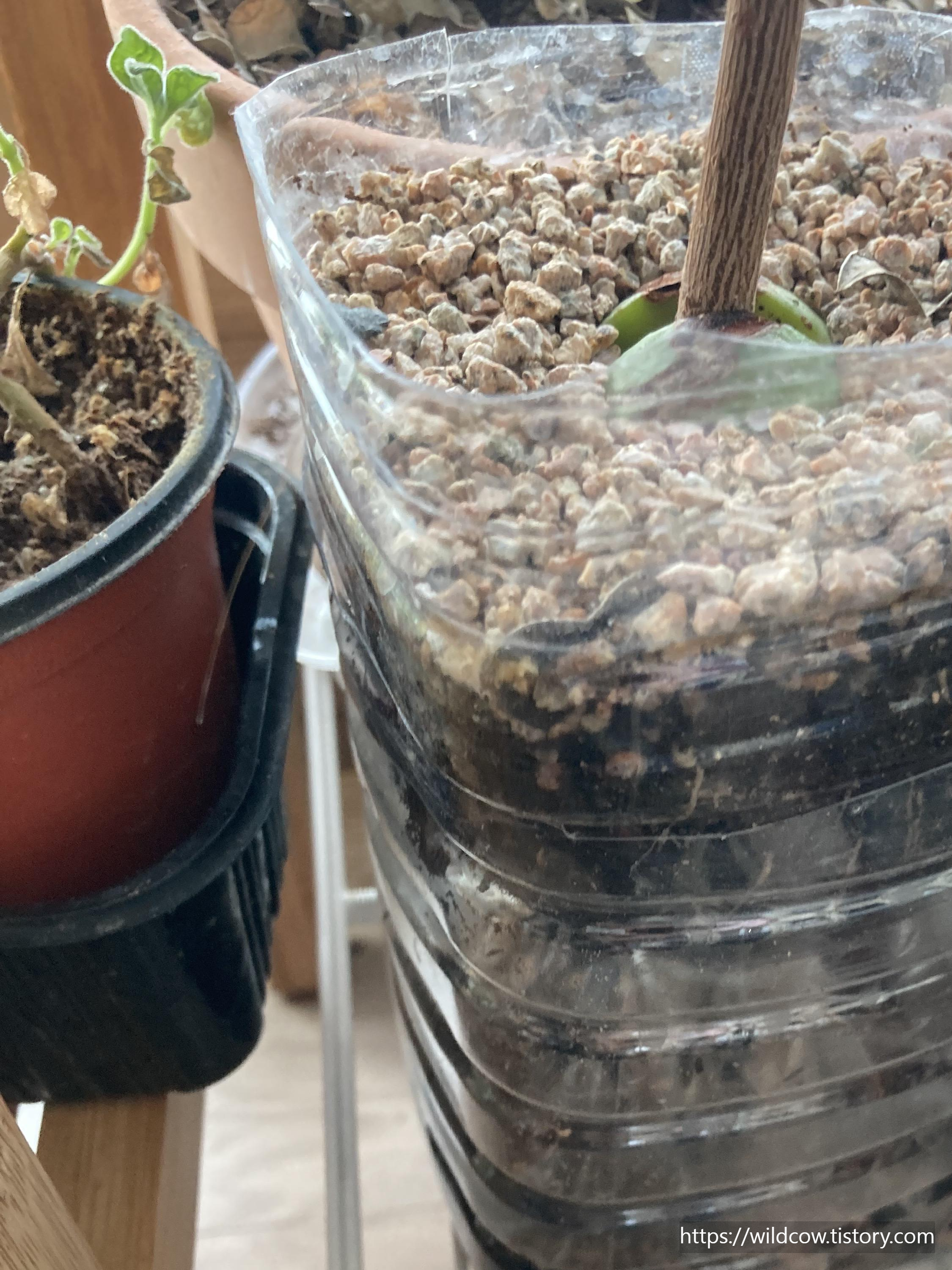 이렇게 페트병을 재활용해서 뿌리를 물에 담가도 됩니다 ^^