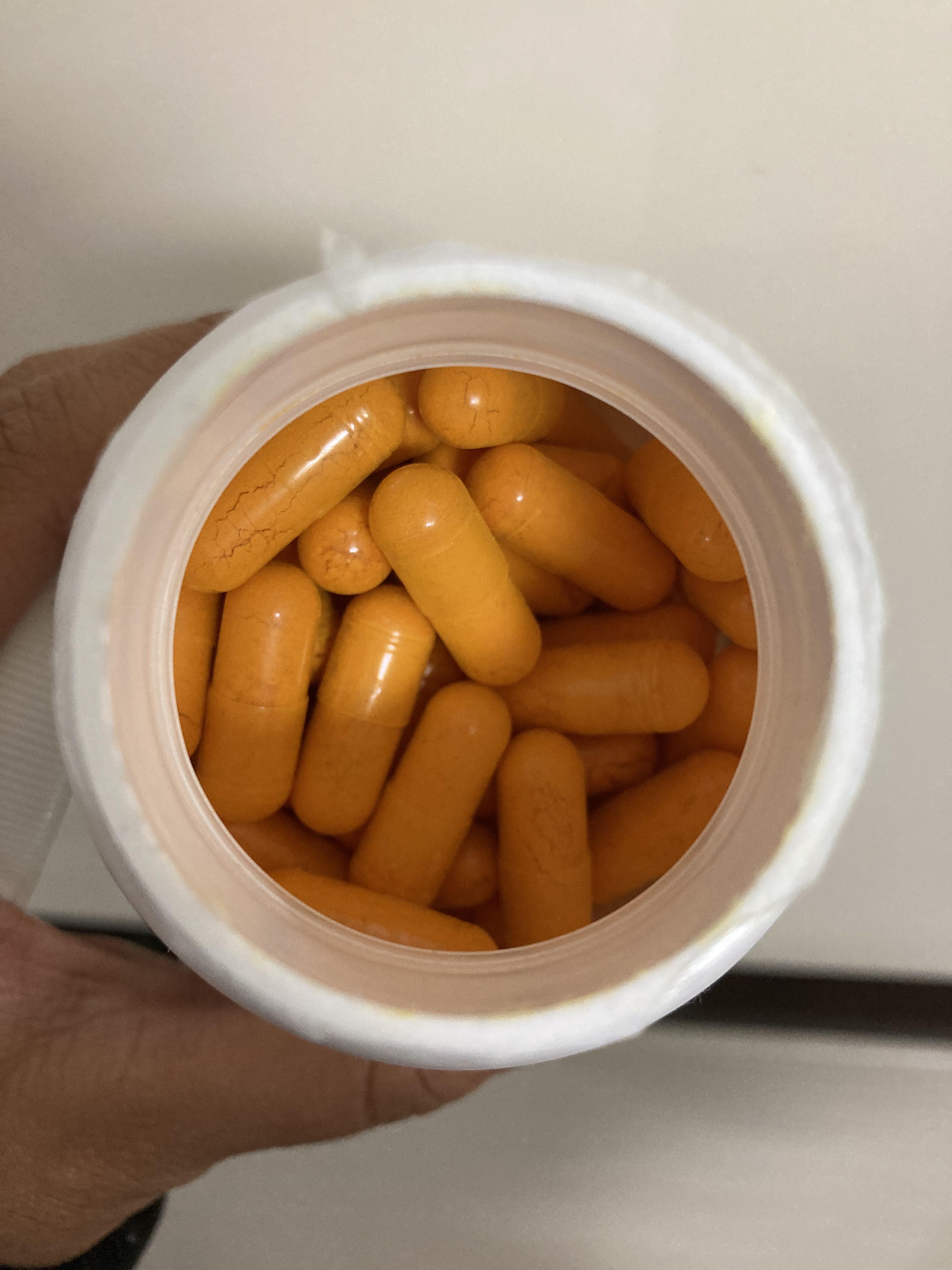 제품을 열면 묘하게 카레 냄새가 나는 노란색 알약이 들어있습니다. 흰색 옷에 오래 두면 노란색 물이 들 수도 있으므로 주의해야 합니다. 알약이 큰 편은 아니나 알약을 삼키는 게 힘든 분들께는 약간 부담스러운 크기일 수도 있습니다.